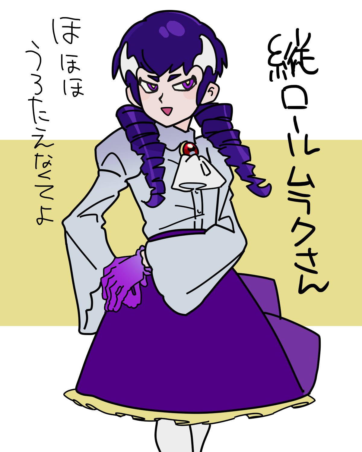 最近重音テトSVの歌にハマっているのですが、そういえば縦ロールのムラクさんは挑戦したことがなかったので、試しに悪役令嬢っぽく描いてみた。似合いすぎでは!?(?) ただなんちゃってで描いたのでこのままほどくとめっちゃロングヘアになりそう。困らない…(?)