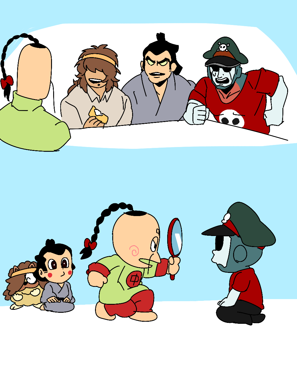 ▲絵に描いてある通り上6枚は「忍法疑心暗鬼にご用心の巻」が元ネタ。この絵だけじゃわからないという人はハットリくん見ろ!(ええ…)
