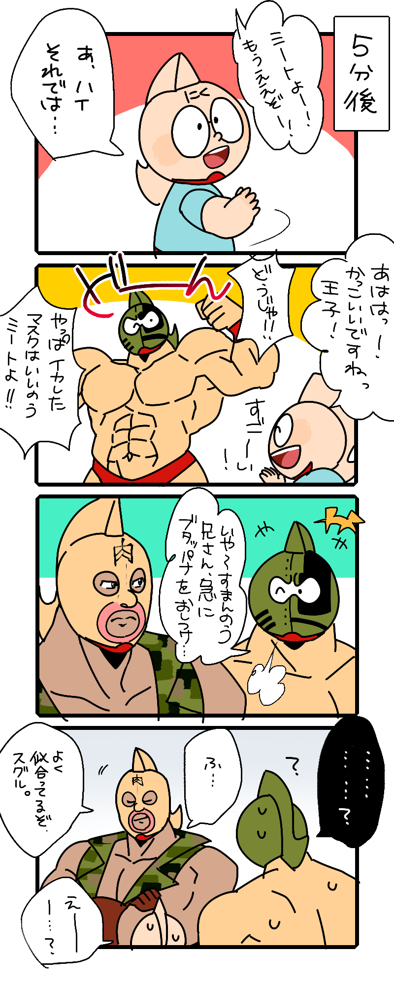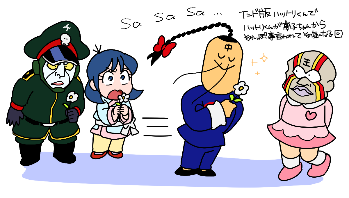 ▲麺まわりでハットリくん…という意味の分からない産物。 ハットリくんカラーのラーメンマン普通にいいなあ。 最後のチャイナ拉娘ちゃんは適当に描いた捏造です。