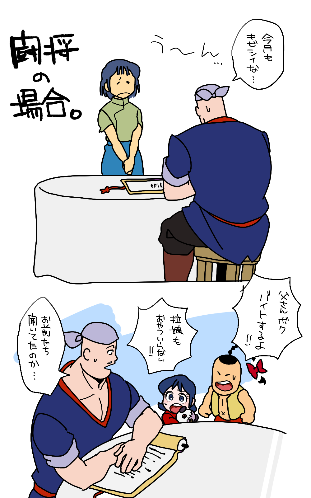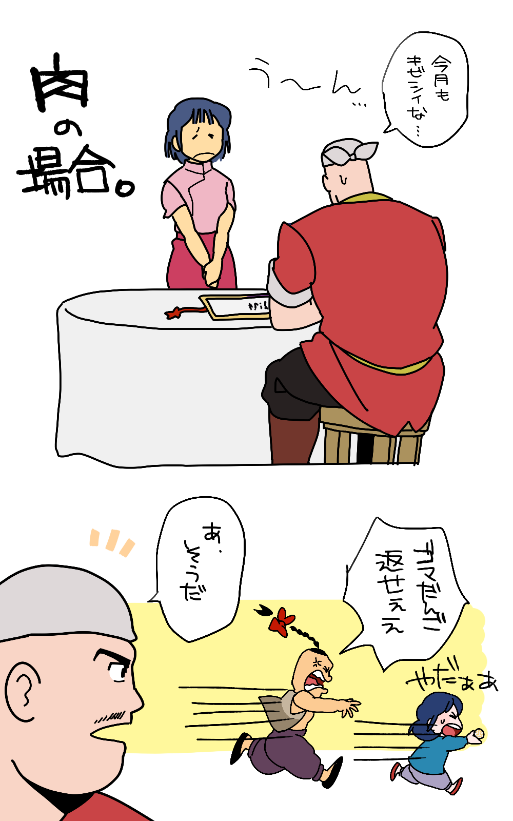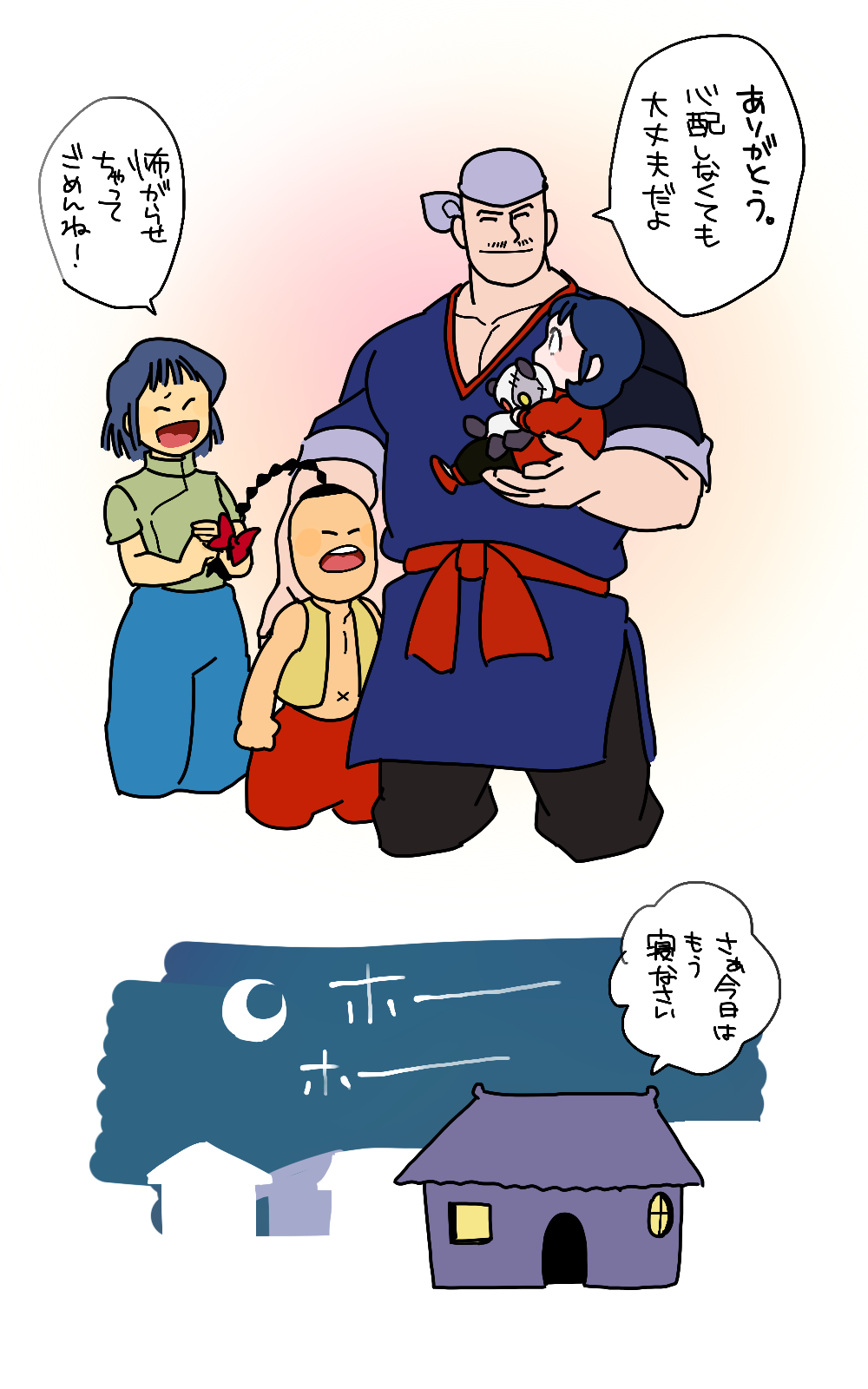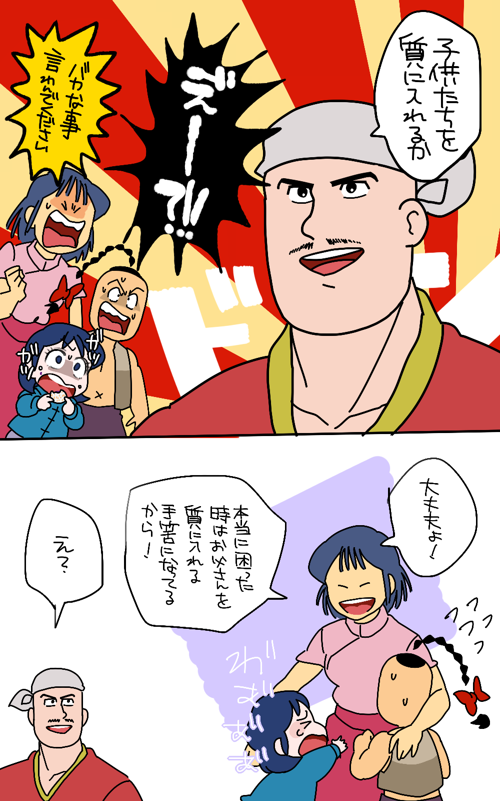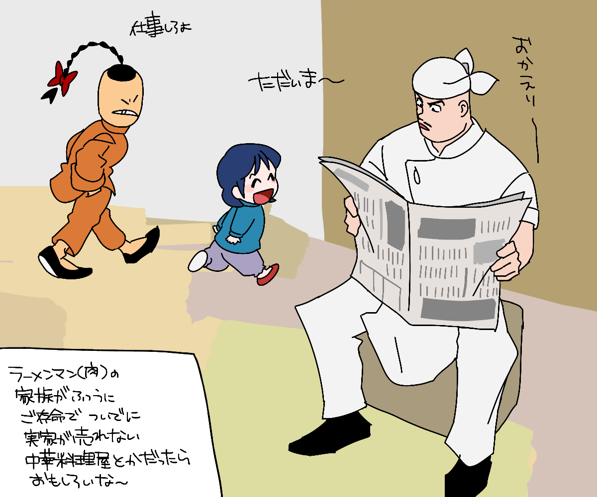 キン肉マン世界と闘将世界はパラレルワールドですが、肉世界のラーメンマンにも闘将世界と同じ家族がいたら? その場合、ラメマの性格の違いと同様に、彼の家族の性格も結構正反対なんじゃないか?という妄想から生まれたネタ。