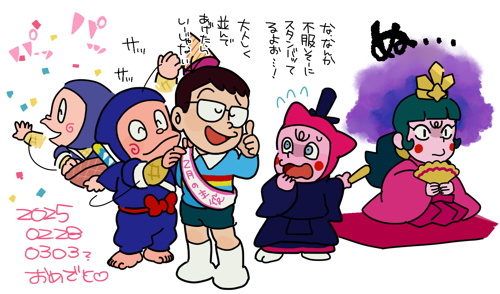 皆さんお誕生日おめでとうございます! フォロワーより教えてもらった例の新説を絵にしてみる(?)。更なる新展開を期待しております!!自分の描くカン様と氏って毎回ふたりできゃっきゃしてるし、シンちゃんは謎に曇ってるし、ツバメちゃんは覚悟の決まった表情をしているなと思った(?)。